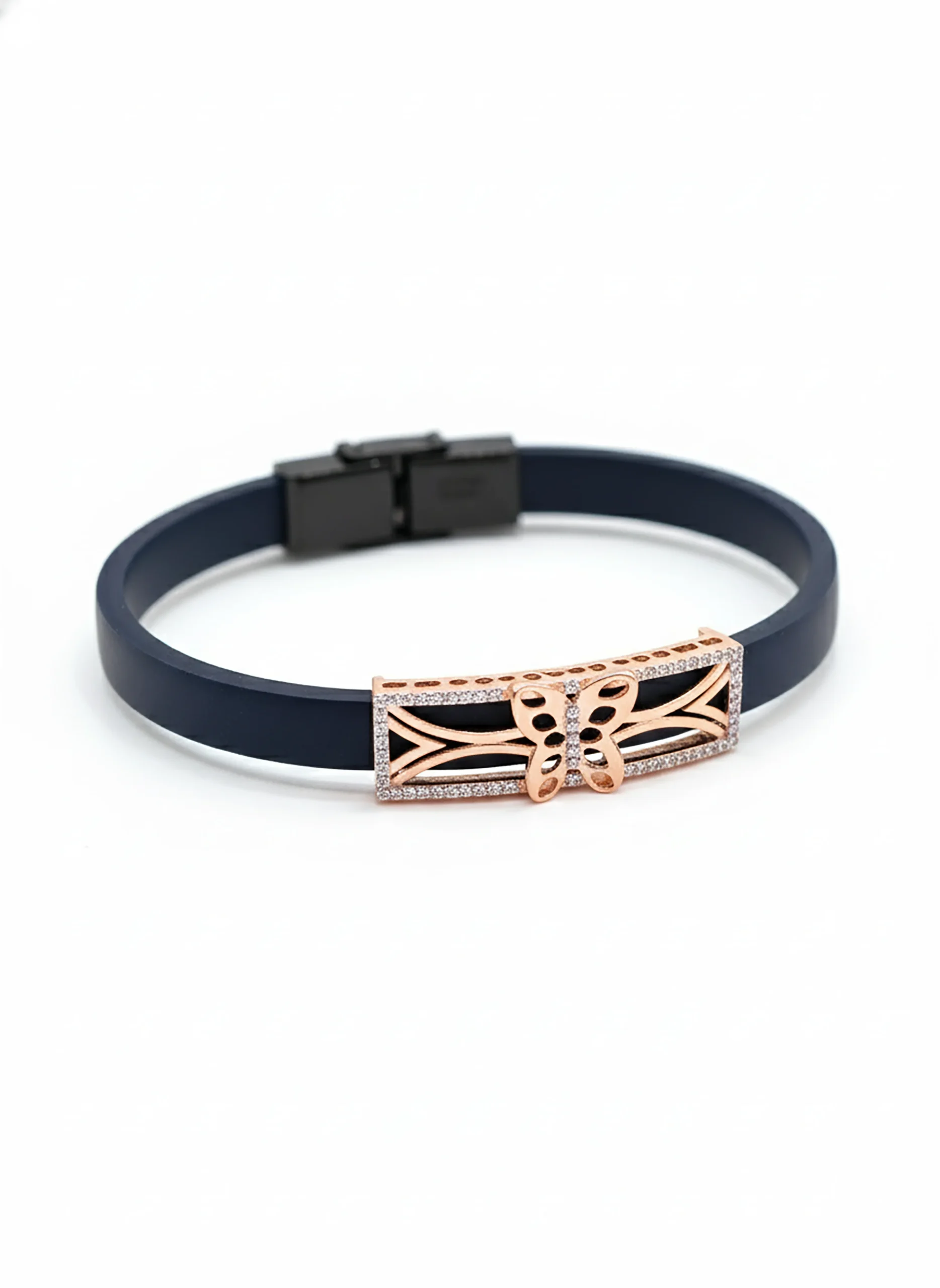 Rose Gold Filigree Butterfly Blue Silicone Bracelet