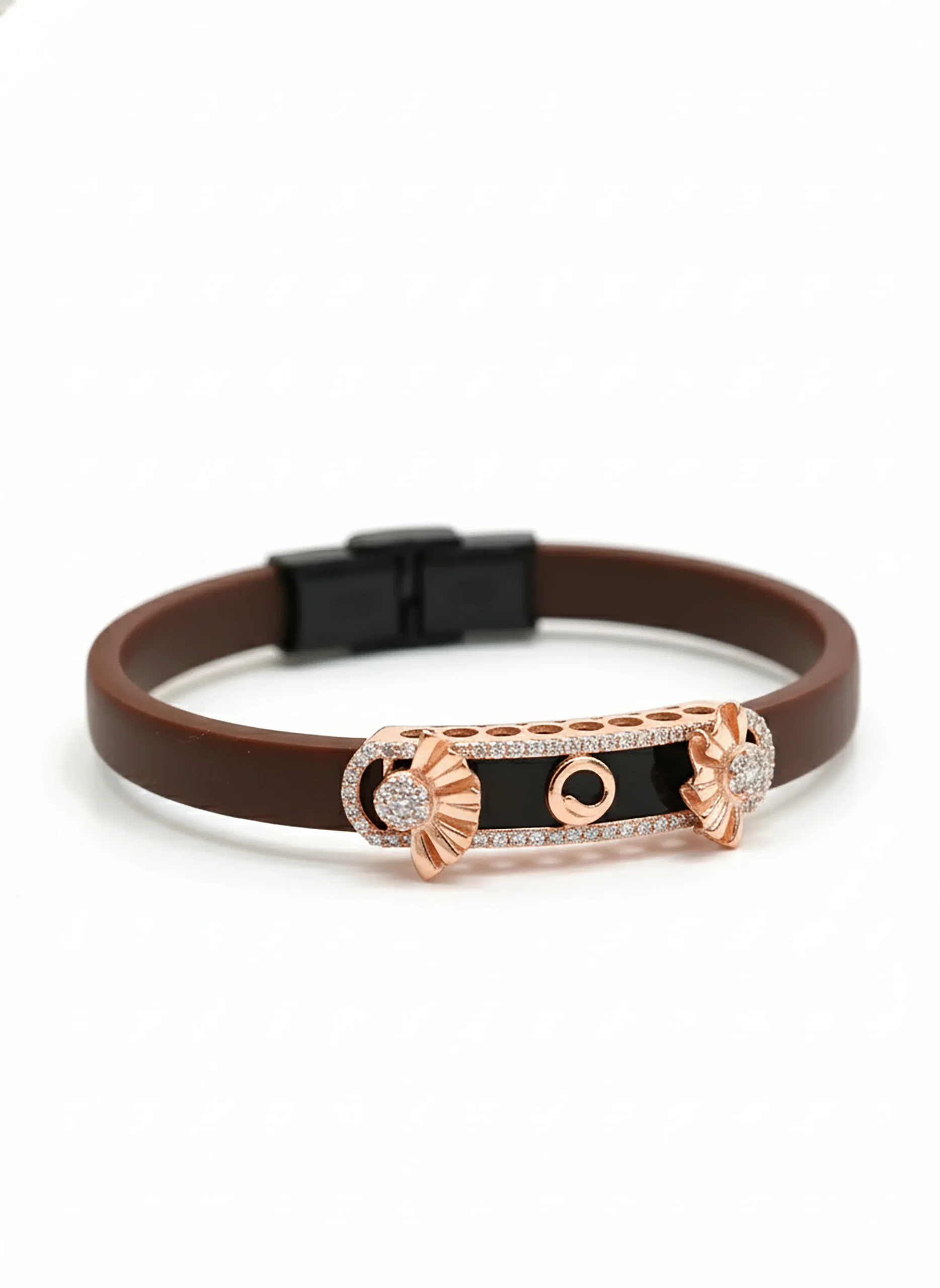 Rose Gold Floral Halo Black Enamel Silver Bracelet