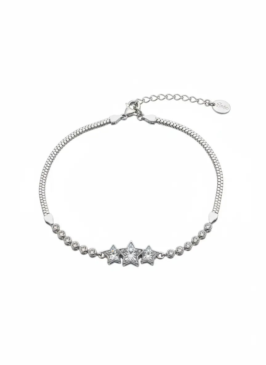 Bring the stars to your wrist with this elegant silver bracelet. The star patterns are finely crafted and adorned with diamonds, creating a shimmering effect that is perfect for evening wear.